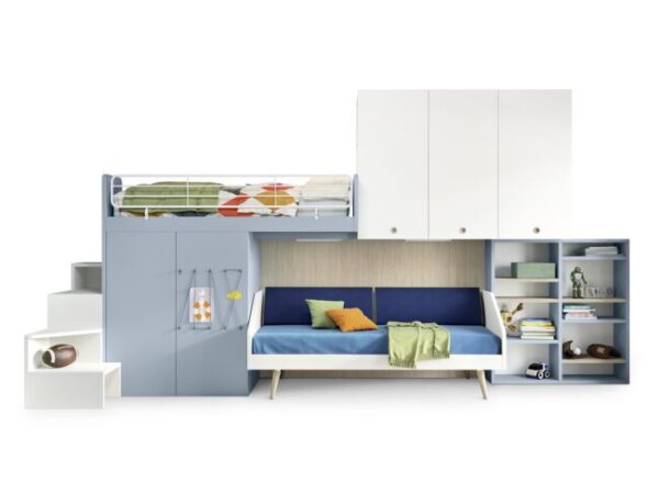 Con i letti a soppalco, lo spazio sotto il letto si può attrezzare in tantissimi modi diversi:
