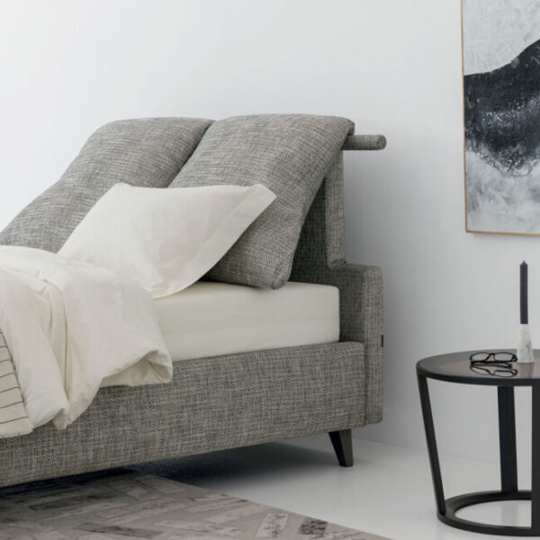 - Letto tessile sfoderabile con morbidi pannelli reclinabili, senza meccanismi, e particolari elementi caratterizzanti della testiera, rifiniti con cura sartoriale.