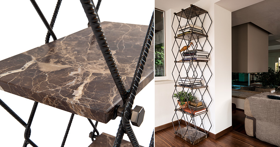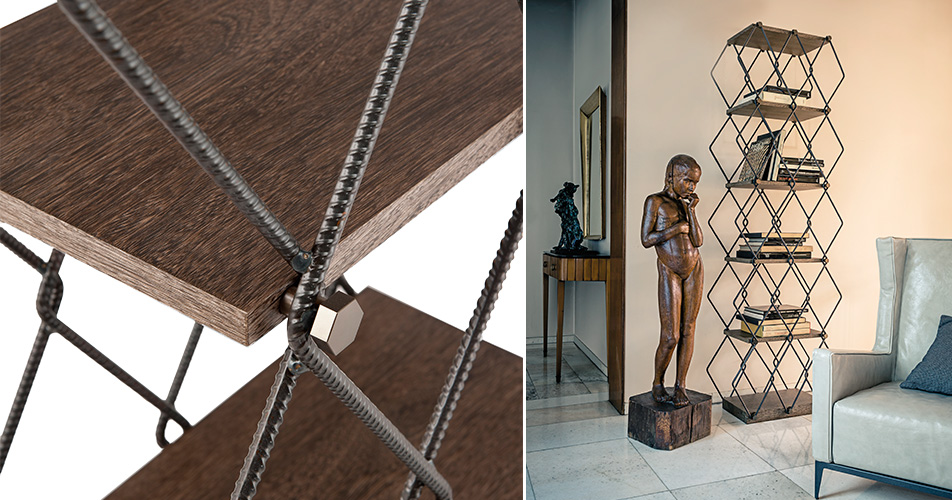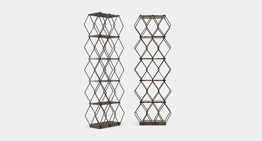Ci sono pochi arredi d’interno in cui qualcosa di così visibile sia stato progettato per essere visto piuttosto che per fondersi con il resto. Lady Bird è una libreria disegnata da Giuseppe Viganò e fa di tutto per distinguersi. La struttura in metallo grezzo crea un disegno romboidale, mentre i legni caldi o il marmo costituiscono i ripiani. Un sistema unico di bulloni ed il contrasto delle forme rendono Lady Bird una libreria diversa.
