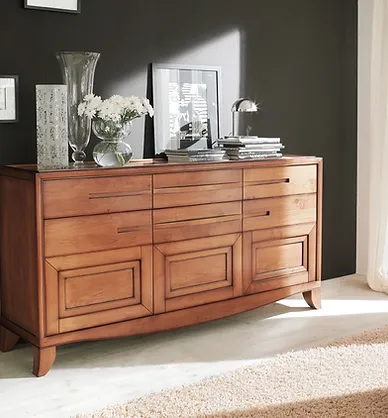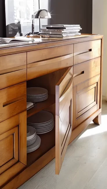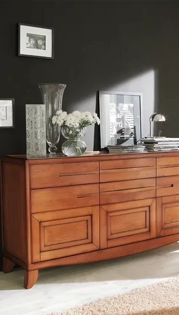 Elegante madia a 3 ante e 3 cassetti. Realizzata in legno di ciliegio, la madia Cristina rappresenta il perfetto equilibrio tra tradizione e attualità. Disponibile nei colori caldi del legno e nei laccati con inserti a contrasto.