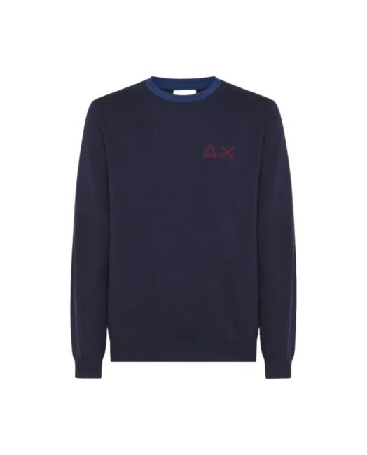Maglia Uomo in misto lana e cotone girocollo, a maniche lunghe con contrasto su gomito e logato su petto. Collo, polsi e fondo a costine