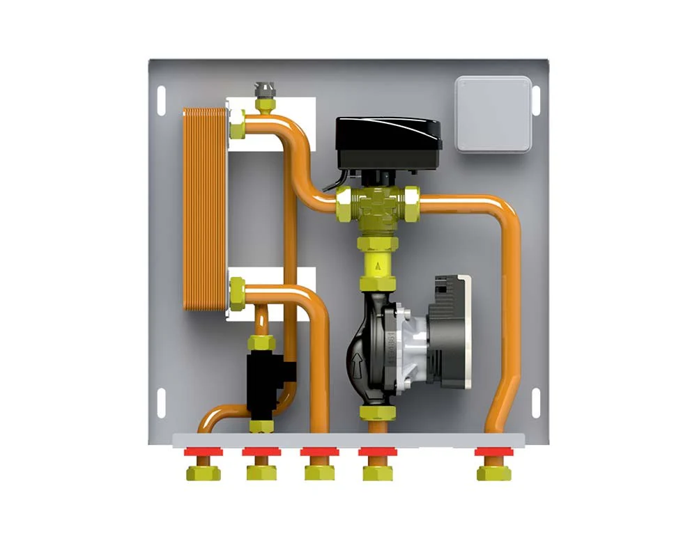 - Modulo per la produzione di ACS istantanea e gestione automatica dell’impianto di riscaldamento da abbinare a termoprodotto a combustibile solido (termocamino/termostufa/termocucina) tramite centralina di controllo elettronica (opzionale).