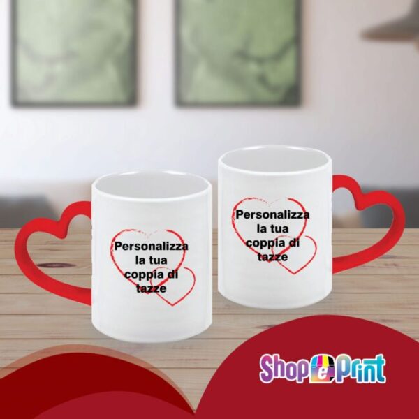 Personalizza Coppia Tazze “Linea Love”con manico a cuore