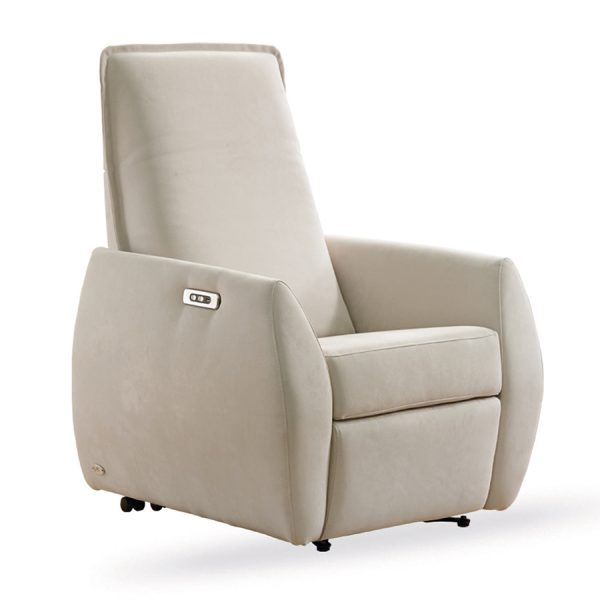 Per ogni momento dedicato al relax. Giorgia è realizzata con struttura in legno di abete e multistrato di prima scelta. Il rivestimento della struttura è in poliuretano espanso ed il cuscino della seduta è nello stesso materiale a quote differenziate. La struttura del piano seduta è un telaio metallico. Meccanismo relax elettrico a due motori con movimento indipendente della pediera e dello schienale dotata di lift messa in piedi (alzapersona).