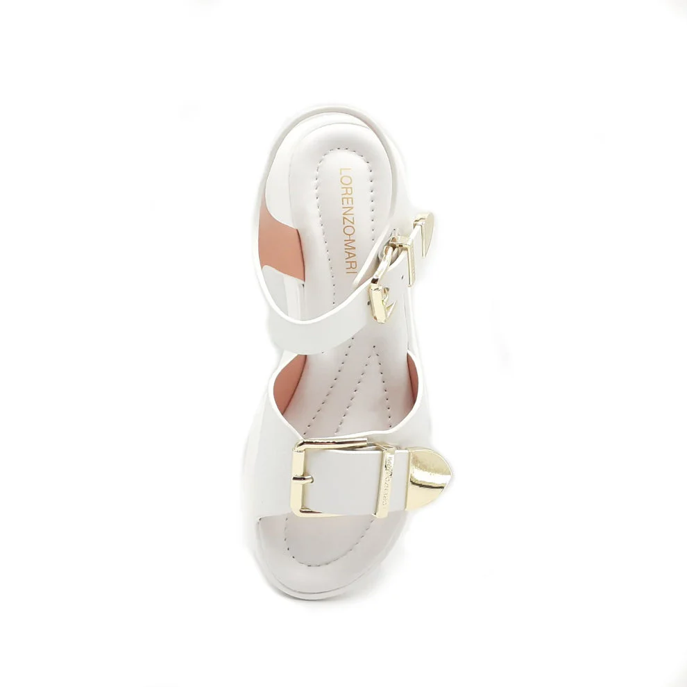 - Sandali Donna Con Zeppa Latte H 6 cm in Vitello Lorenzo Mari