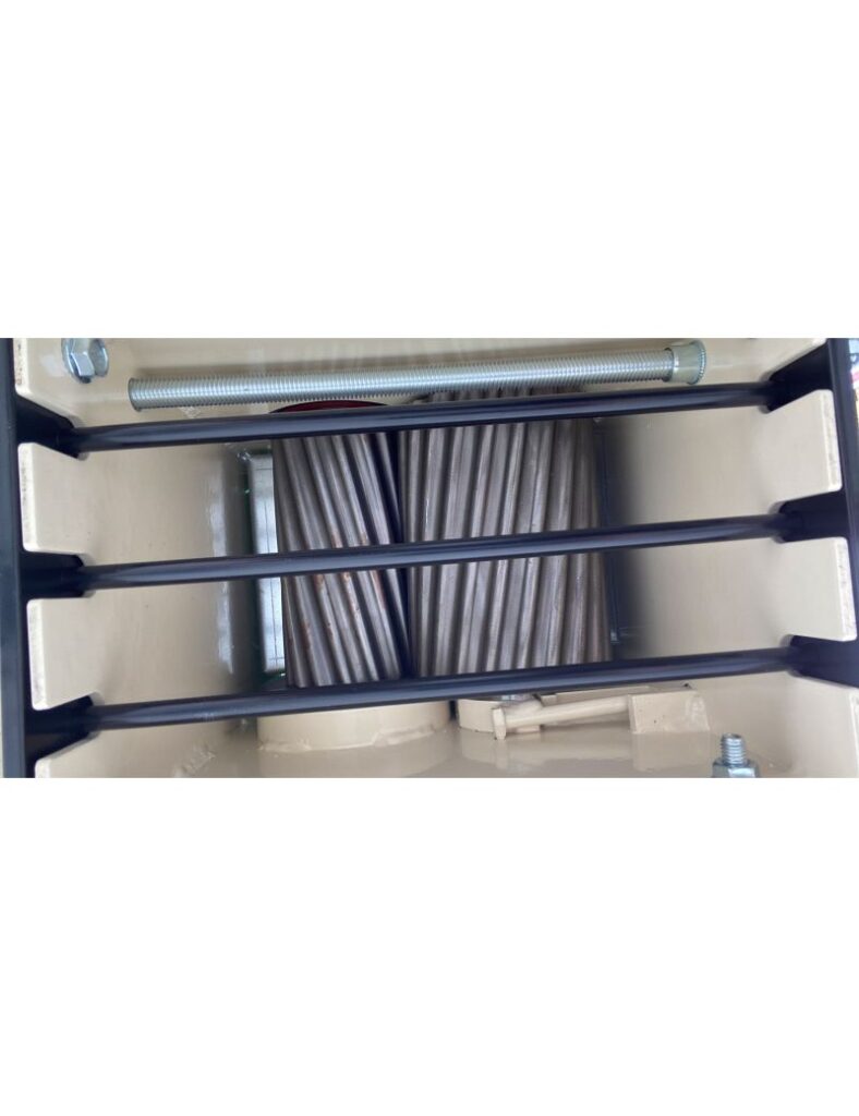 - La TRAMOGGIA contenitore è posizionata nella parte superiore, completa di grigia di sicurezza, può essere caricata manualmente o essere completata di sensori per il collegamento elettrico alla coclea per la gestione del carico.