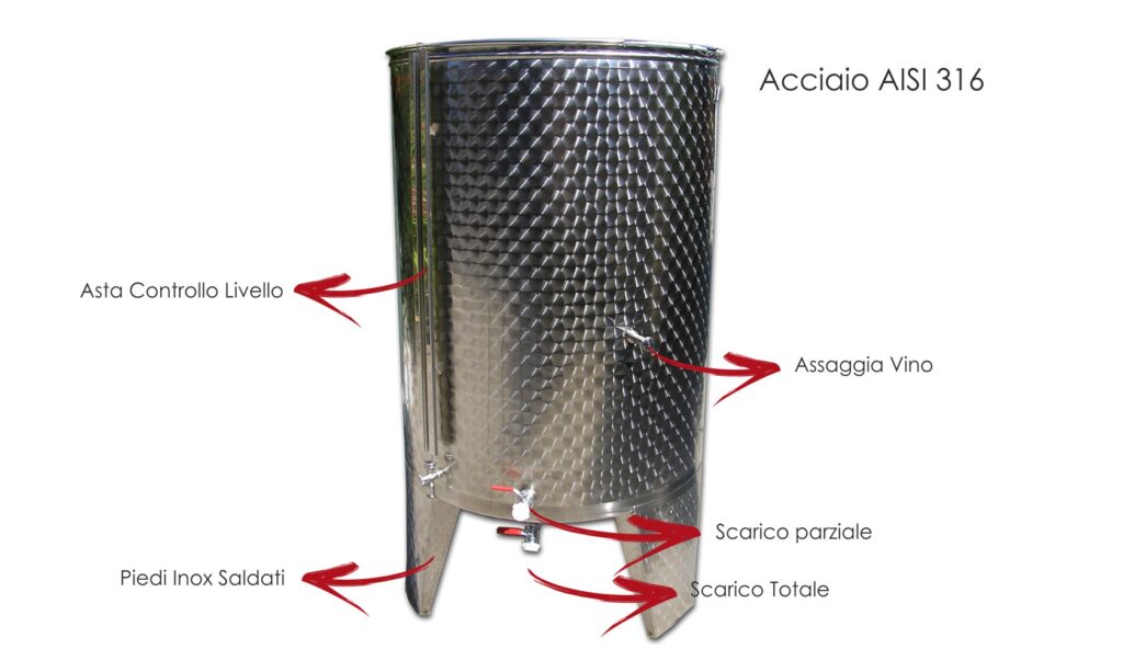 Botte Serbatoio in Acciaio Inox AISI 316 da 530 Litri con sistema di chiusura pneumatico, ad aria (possibilità di chiusura ad olio)