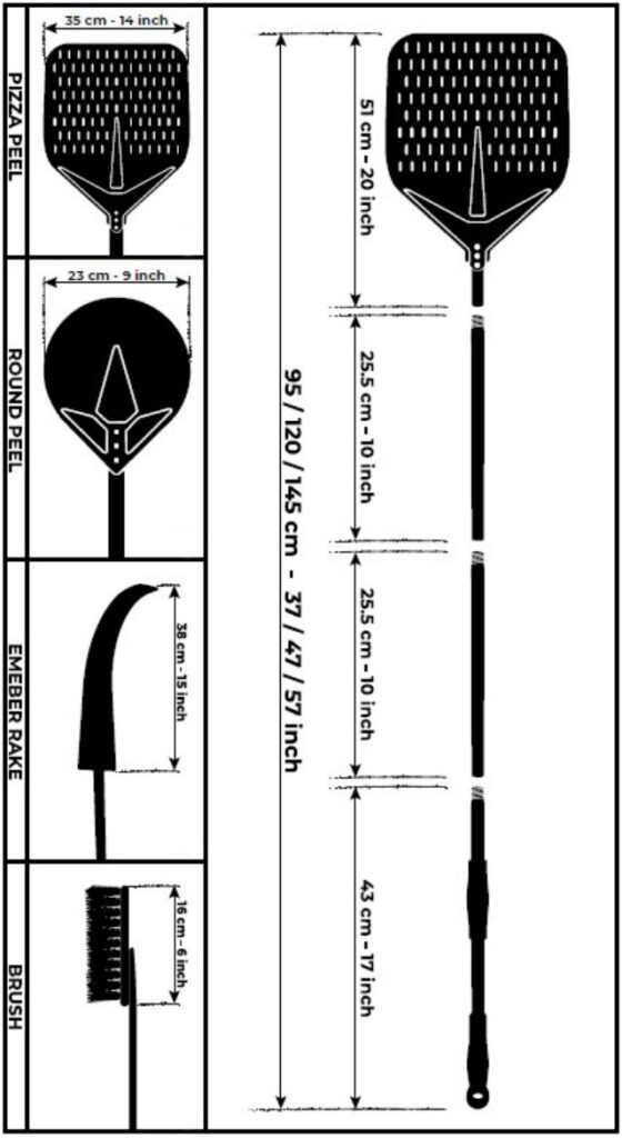 - Con un design ergonomico e pratico, le pale Alfa consentono di maneggiare le pizze con precisione e facilità, assicurando risultati perfetti ogni volta.