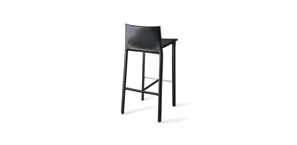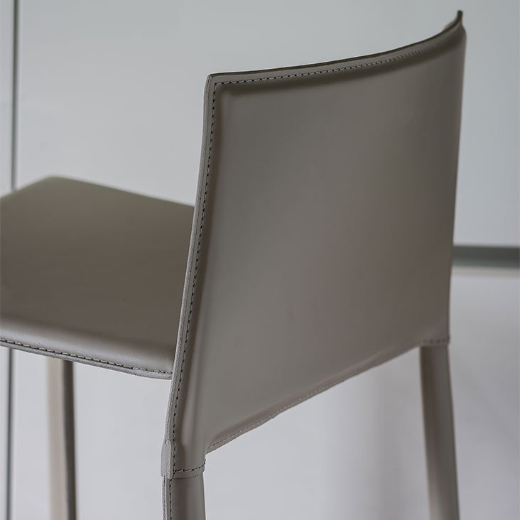 Sgabello con struttura in acciaio completamente rivestito in cuoio come da campionario. Cuciture standard.