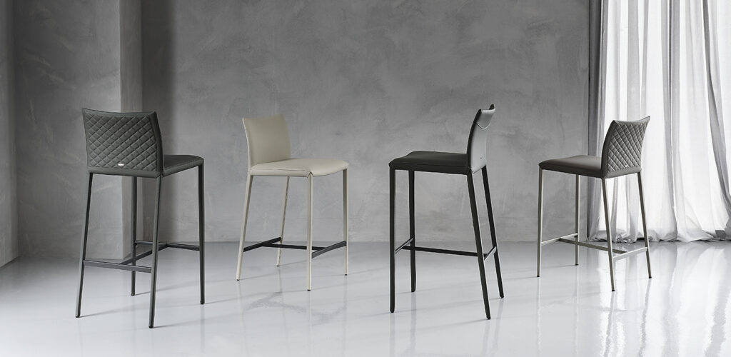- Sgabello imbottito con struttura in acciaio interamente rivestita in ecopelle,