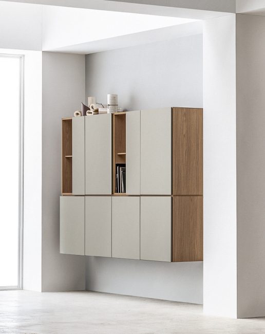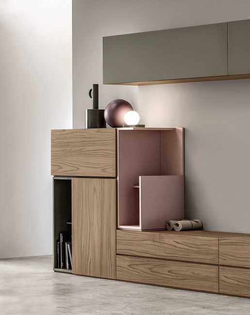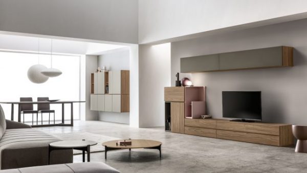 - Il soggiorno combina finiture e colori a moduli chiusi e aperti, per una personalizzazione massima dal carattere moderno e innovativo.