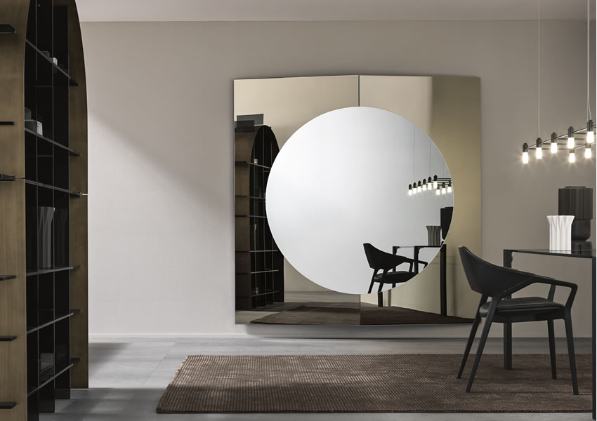 Le finiture dei tre pannelli sono disponibili in specchio, specchio oro, bronzo o specchio fumé che si possono abbinare tra di loro.