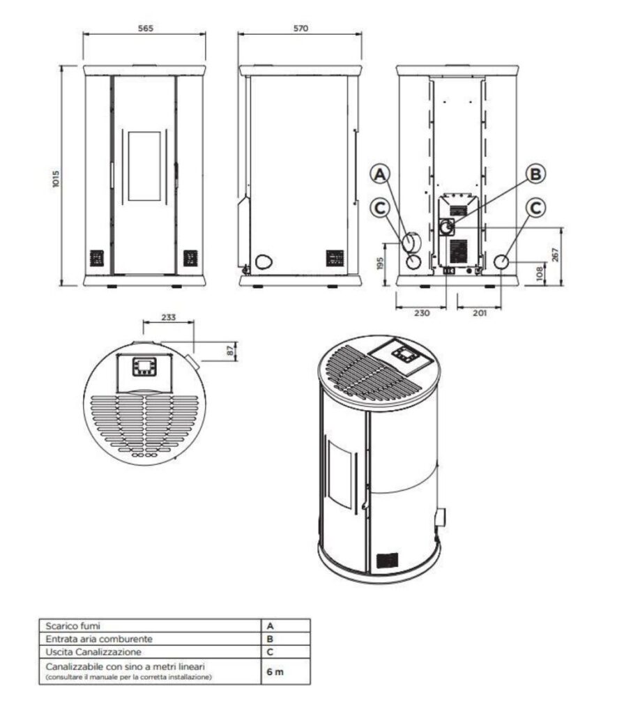 - Stufa a pellet Fancy Canalizzabile 12 kW Termovana Classe A+, uscita fumi posteriore riscalda fino a 95 mq, braciere in ghisa, stufa ermetica.