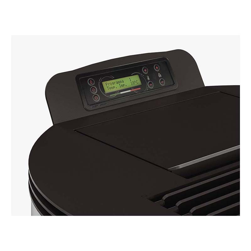 - Stufa a pellet Air Louvre termovana classe a, design circolare e linee sinuose, stufa ermetica, braciere in ghisa, sistema di modulazione e 8 regolazione.