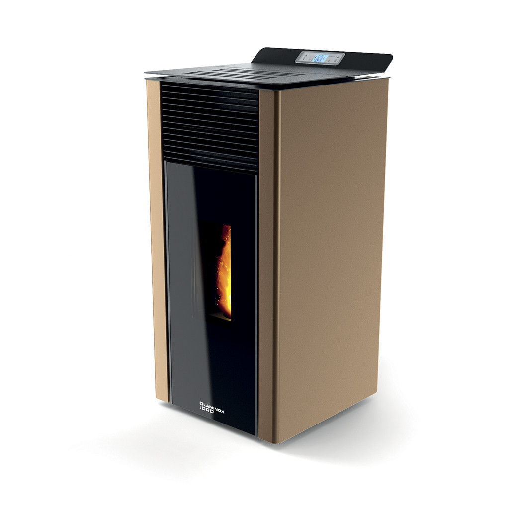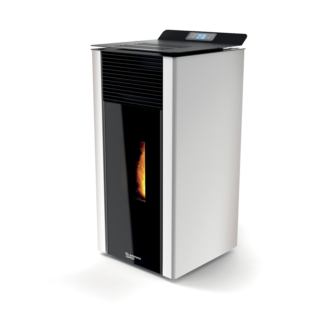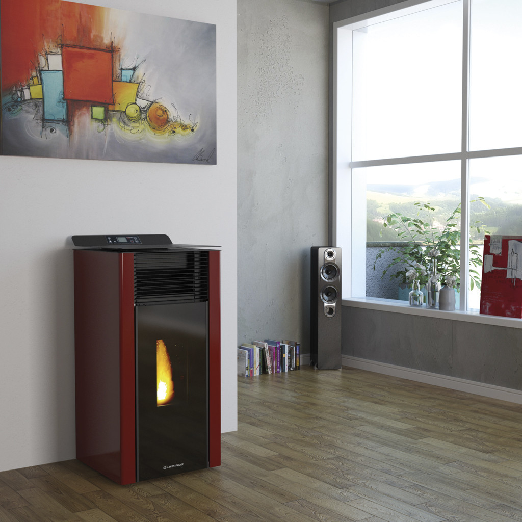 - Stufa a pellet compatta dallo stile cubico.