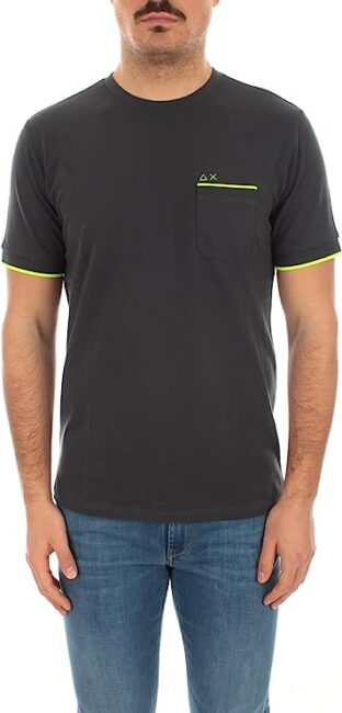 - T-shirt uomo modello small stripes cuffs, a maniche corte in puro cotone. Taschino applicato sul petto e dettagli in contrasto colore.