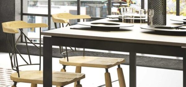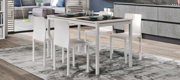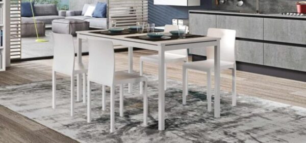 - Tavolo allungabile con struttura in metallo verniciato nero o bianco,