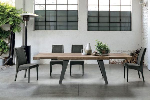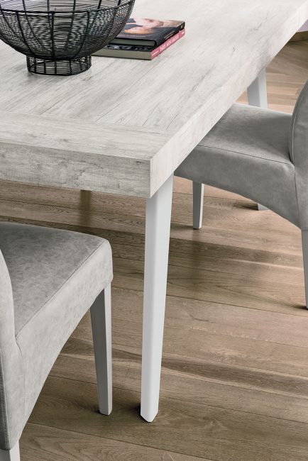 - Tavolo allungabile con struttura in metallo verniciato o spazzolato. Piano ed allunghe laterali in laminato.