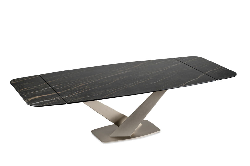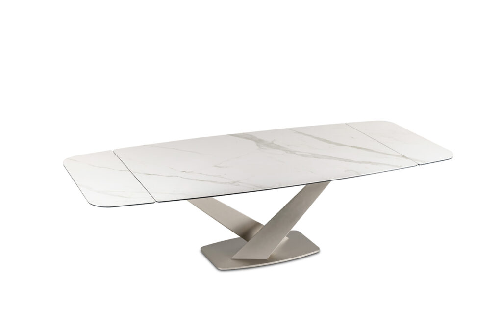 - Tavolo da pranzo estensible con piano e prolunghe in cristallo o ceramica.