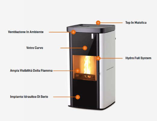 - Soft è uno dei nostri best seller, vincitore del Good Design Award 2022. Le sue forme eleganti e il top in maiolica artigianale si integrano perfettamente in ogni ambiente, garantendo prestazioni uniche. Può essere alimentata sia a legna che a pellet, con passaggio automatico tra i combustibili. Con 5 stelle di efficienza energetica, è ideale per il conto termico. Il sistema di alimentazione dal basso brevettato elimina la necessità di pulizia quotidiana.