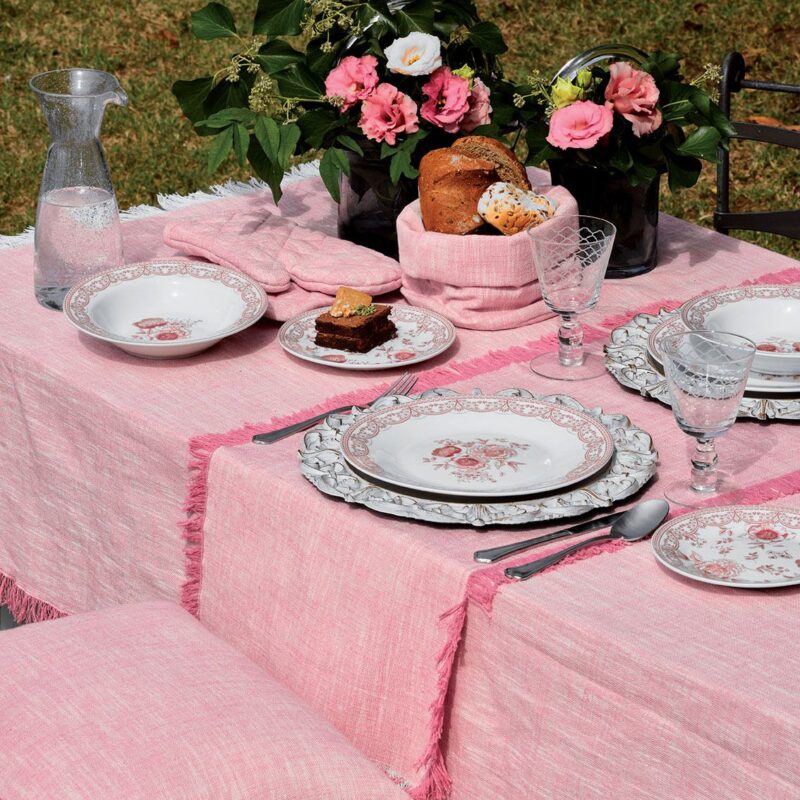 - La tovaglia Volterra Rosa Antico fa parte di un’ampia collezione marchiata Andrea Fontebasso di accessori per la tavola e per l’arredo di diverse tonalità.