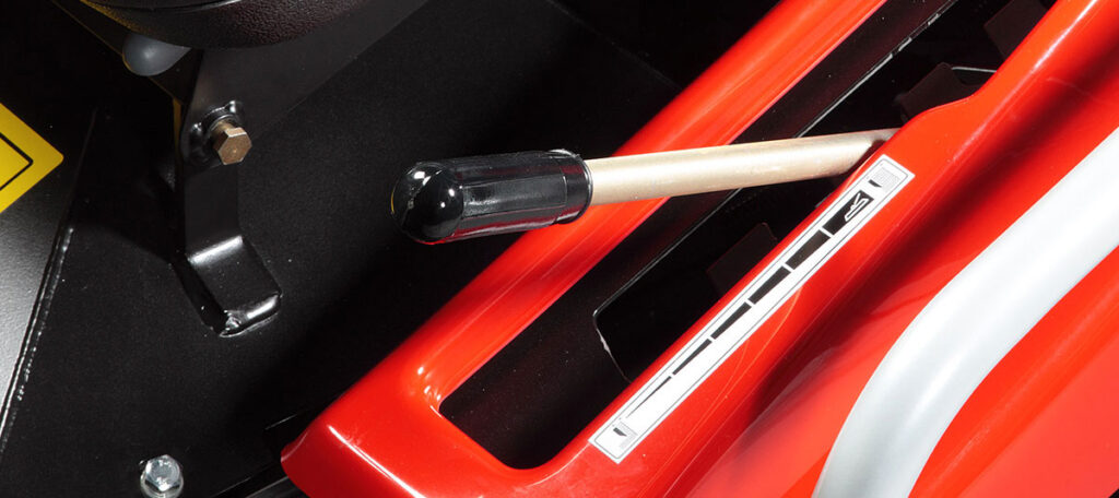 Equipaggiato con numerosi dispositivi per semplificare il lavoro dell’operatore, come l’azionamento elettromagnetico della frizione, la trasmissione idrostatica, il differenziale bloccabile che permette di superare ogni condizione su qualsiasi tipo di terreno, e la regolazione centralizzata dell’altezza di taglio.