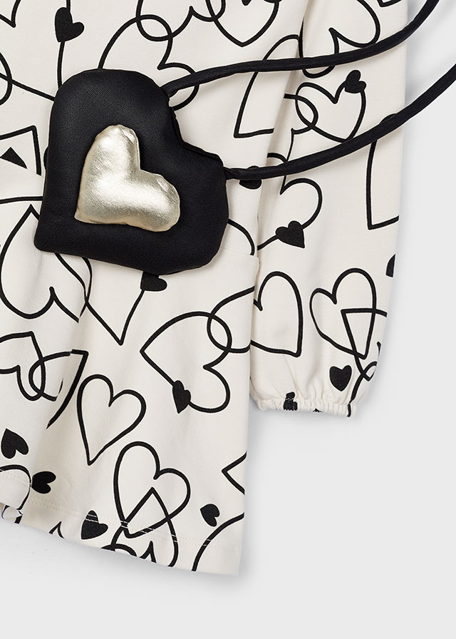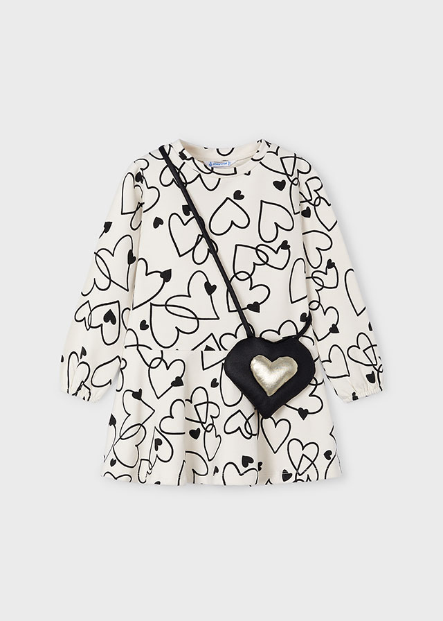 - Vestitino manica lunga, fantasia cuori, con borsetta in abbinato.