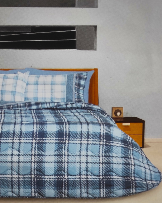 - Trapunta singola Scottish con fantasia tartan, angoli tondi e trapuntatura a onda.